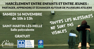 Un groupe de travail « Enfance » (3/12 ans), lié au Projet Éducatif de Territoire (PEDT) de Mellois en Poitou, et composé d’agents (enfance-jeunesse, et affaires scolaires), d’élus, d’associations, de deux étudiants bénévoles et de partenaires a été chargé de mener une réfléxion autour du harcèlement.
