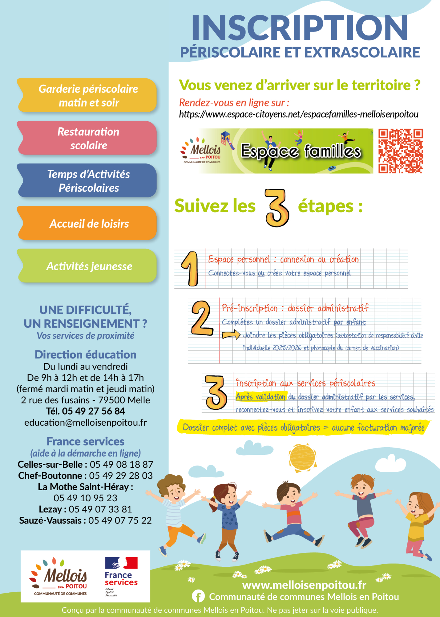 - Cette inscription OBLIGATOIRE se fait auprès de Mellois en Poitou en créant un "espace privé" sur l'ESPACE FAMILLES